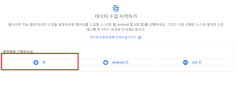 데이터 수집 시작하기가 나오면, 티스토리에 연결을 하는거니 웹을 선택해 줍니다.