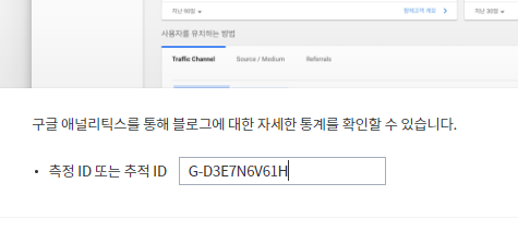 그러면 이렇게 심플하게 측정 ID 또는 추적 ID를 입력하는 박스 입력창이 뜨는데요 복사한 ID를 붙여 넣고 적용합니다.