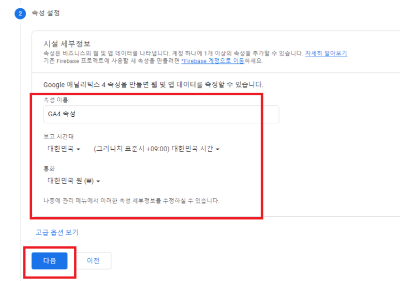 속성 이름은 원하시는 대로 적으시고, 보고 시간대와 통화를 적습니다. 굳이 대한민국으로 하지 않아도 되지만 그래도 한국 기준으로 보는게 편하시면 보고 시간대는 대한민국, 통화는 대한민국 원으로 설정합니다.