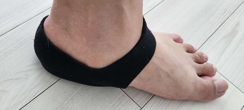 위 사진은 제품을 착용했을 때의 모습으로 느낌은 부드러운 슬리퍼보다 훨씬 고통이 없습니다. 보통 족저근막염이 있을 때 아침에 처음 발 디디는 시간이 가장 두렵기도 한데 일어나자마자 이 제품을 착용하고, 약간의 스트레칭을 하면 초반에 고통 자체가 거의 없다시피 할 정도입니다. 촉감은 마우스 혹은 키보드에서 보호 쿠션과 느낌이 비슷하다고 생각하시면 됩니다.